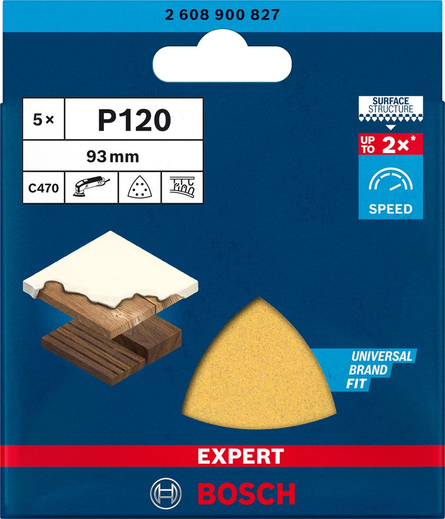 Bosch Surface Structure, unikátní povrchová úprava, zabraňuje zanášení brusných zrn během práce, čímž umožňuje jejich neustále vysokou efektivitu. Tato technologie navíc zajistí, že brusná zrna jsou na konci výrobního procesu nastavena tak, aby jejich ostré hroty směřovaly ven, což je klíčem k agresivnímu odbrušování materiálu.