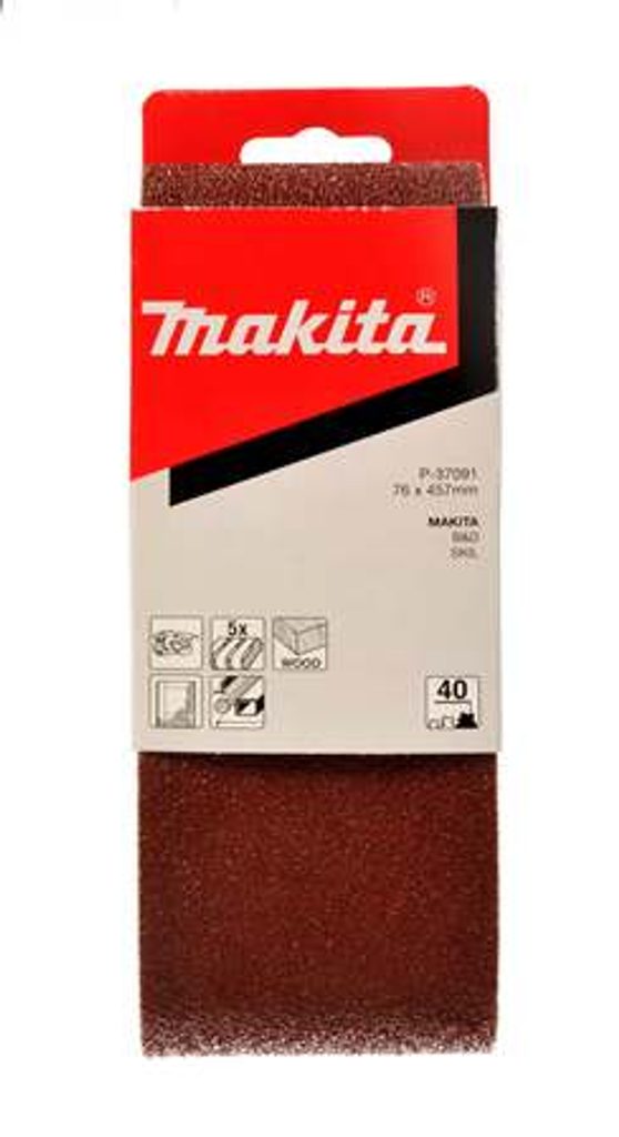 Kvalitní brusné pásy Makita, určené pro pásové brusky, jsou ideální pro široké spektrum použití, včetně broušení různých materiálů, jako jsou dřevo, barevné kovy, plasty a přírodní nebo umělý kámen.