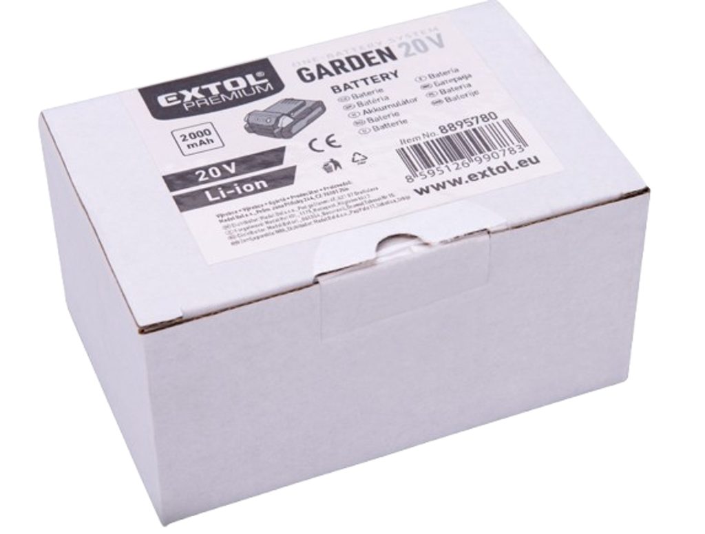 Akumulátor EXTOL PREMIUM GARDEN 20V, 2 Ah je ideální volbou pro všechny, kdo chtějí dlouhou výdrž a maximální spolehlivost. Díky moderní Li-ion technologii s kapacitou 2000 mAh poskytuje stálý výkon bez paměťového efektu a rychle se nabíjí.