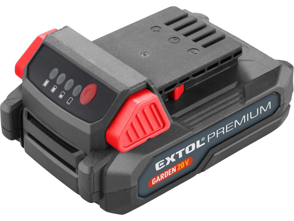 Praktický indikátor nabití vám vždy ukáže aktuální stav baterie, takže přesně víte, kolik energie vám ještě zbývá. Akumulátor je plně kompatibilní s aku zahradní technikou EXTOL PREMIUM GARDEN 20V a postará se o to, abyste mohli pracovat bez zbytečných přestávek.