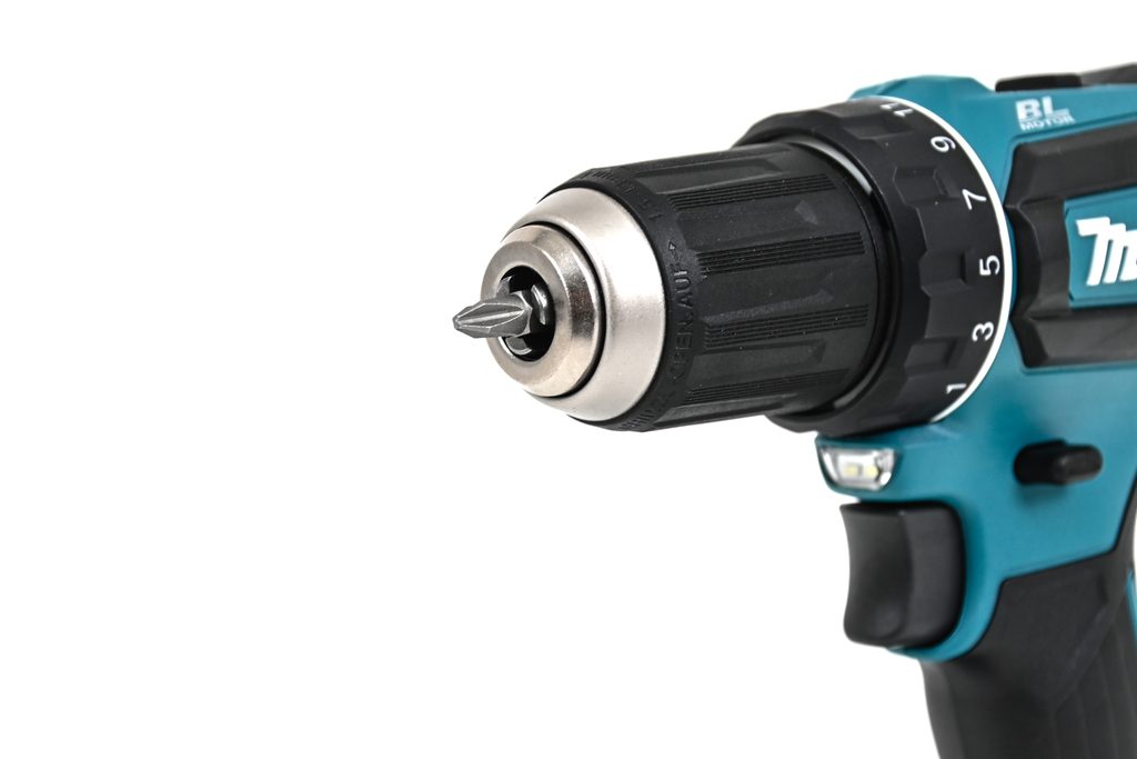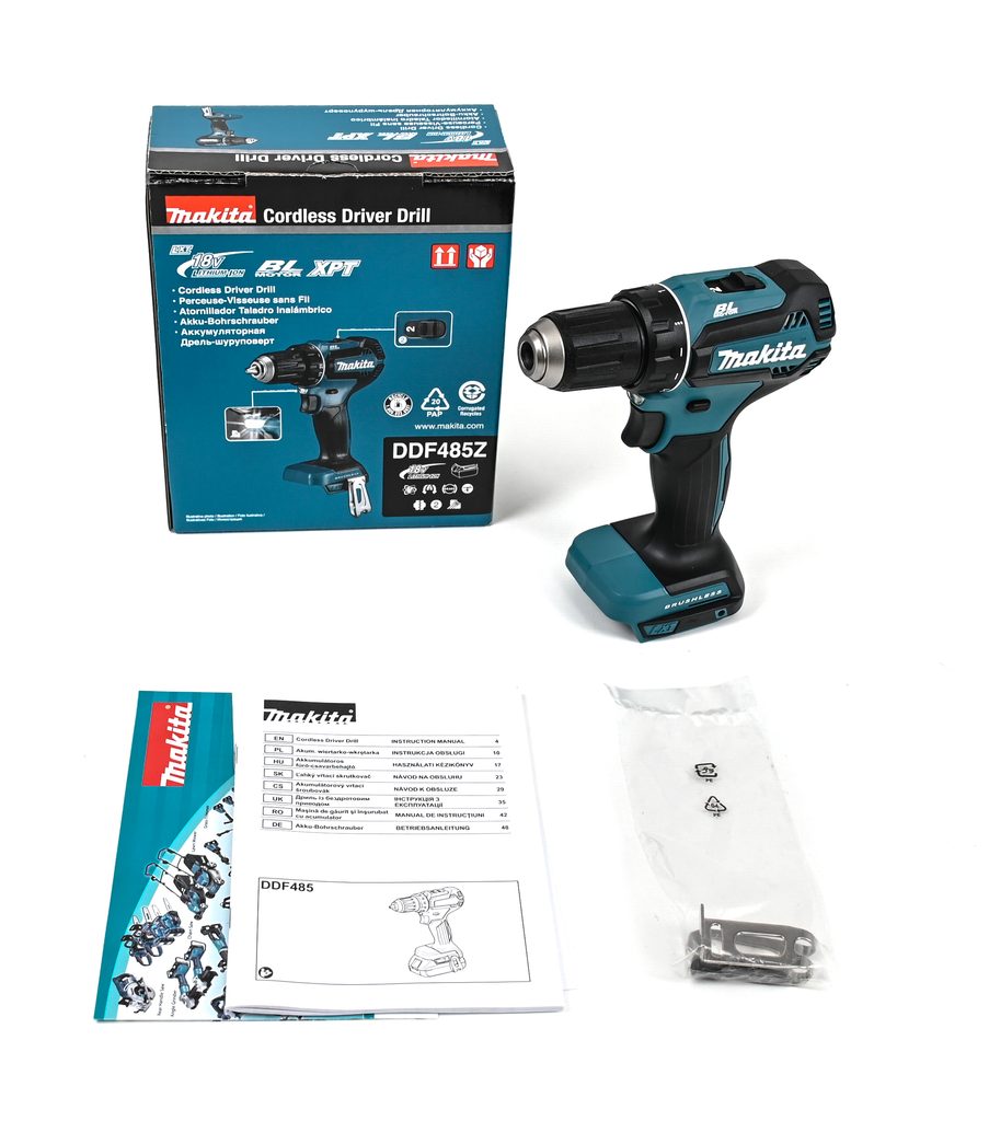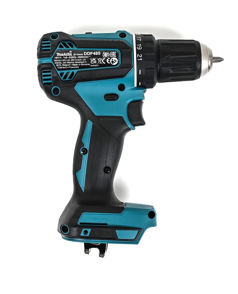 Makita LXT 18V DDF485Z je kompaktní a lehký nástroj, který se snadno ovládá. Je vybaven dvourychlostní celokovovou převodovkou, která zajišťuje spolehlivý výkon a dlouhou životnost. Velký elektronický vypínač umožňuje pohodlnou práci, zatímco LED osvětlení pracovní plochy zlepšuje viditelnost v horších světelných podmínkách. Ergonomicky tvarovaná pogumovaná rukojeť poskytuje komfort a kontrolu při práci.