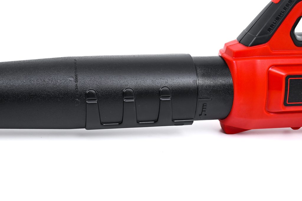 Rukojeť s měkkým držadlem zajišťuje pohodlný a bezpečný úchop, což usnadňuje jeho manipulaci. Délka foukací trubky je nastavitelná ve třech různých polohách bez nutnosti použití nářadí, což umožňuje ideální přizpůsobení. Navíc je na konci trubky umístěn robustní kovový kroužek, který chrání trubku před poškozením a prodlužuje tak životnost nástroje.