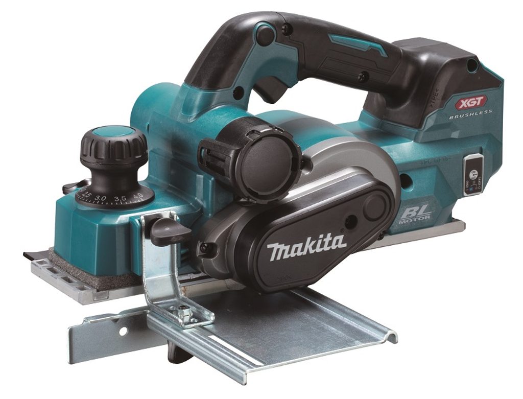 Aku hoblík Makita pro falcování, hoblování a srážení hran. Disponuje technologií Li-ion XGT 40V umožňující extrémní zatížení stroje a dlouhou výdrž na jedno nabití akumulátoru. Technologie AWS umožňuje připojení aku vysavače přes BlueTooth a automatické spuštění odsávání v případě zapnutí stroje. Držák hřídele hoblíku je z hliníkového odlitku. K snadnému srážení hran jsou v základně hoblíku 3 drážky.