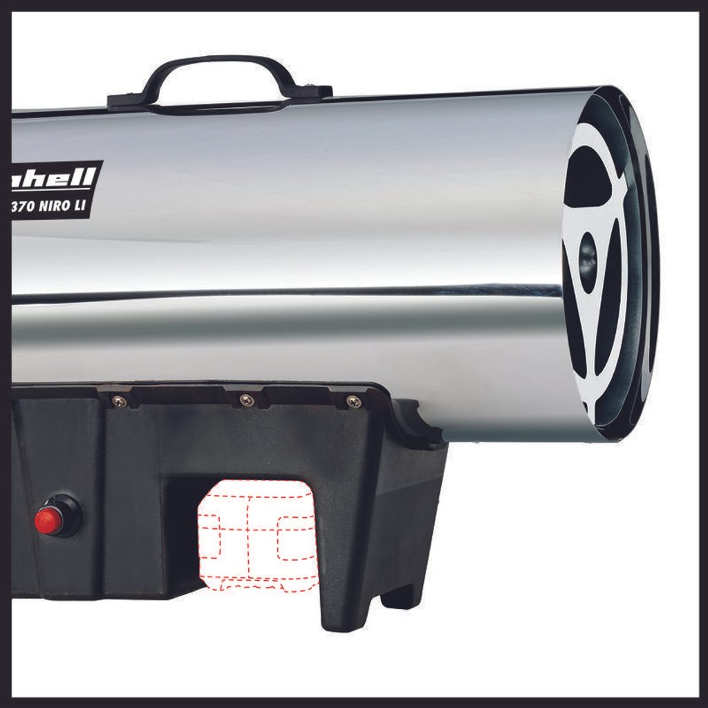Einhell GE-HG 18/370 je členem rodiny Power X-Change, což znamená, že pro provoz potřebujete 18 V baterii, kterou lze snadno kombinovat s jinými nástroji této řady. Díky piezoelektrickému zapalování je spuštění turbíny rychlé a bezpečné, o což se starají také piezoelektrický ochranný kryt plamene a zadní ochranný kryt. Pro snadnou manipulaci je turbína vybavena integrovanou rukojetí a díky nerezové oceli a pozinkovanému plášti nabízí dlouhou životnost a odolnost vůči povětrnostním vlivům.