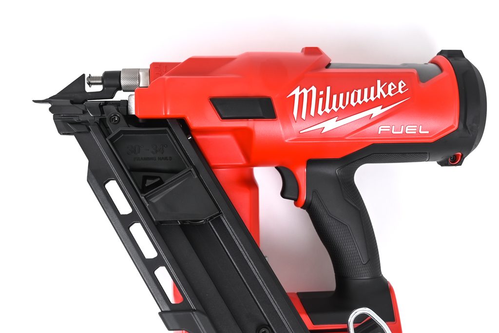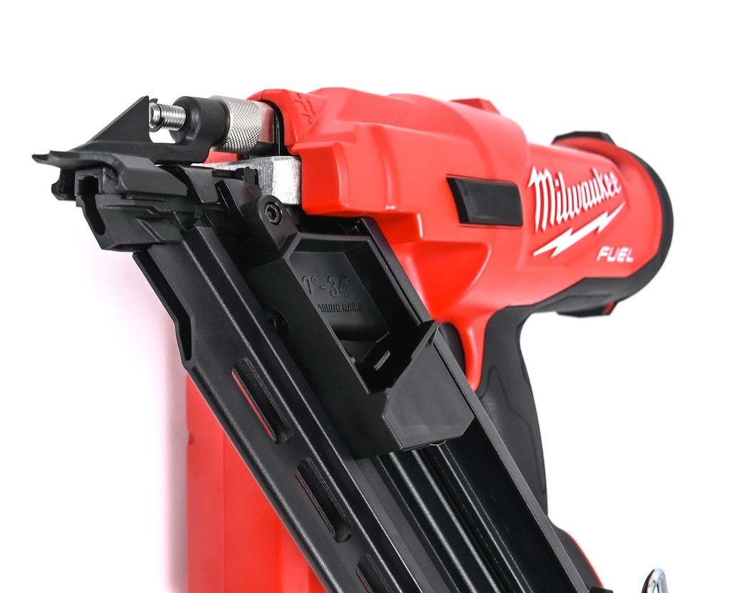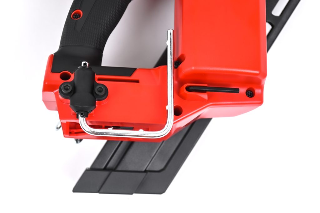 Hřebíkovačka pracuje se standardními kotevními hřebíky vhodnými pro úhlové zásobníky 30° nebo 34°. Rychlý přístup a uvolnění v případě zaseknutí usnadňují manipulaci. S LED světlem osvětlená pracovní plocha zlepšuje přesnost umisťování hřebíků.
