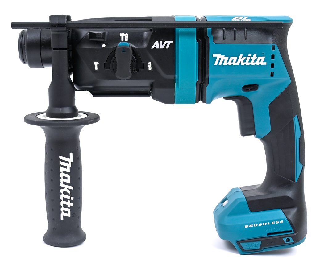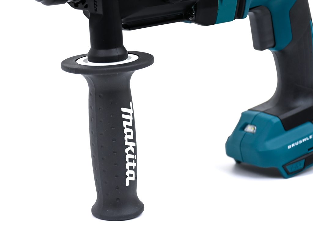 Model také disponuje elektronickým vypínačem, motorovou brzdu a prokluzovou spojkou pro zvýšení bezpečnosti a efektivity práce. Pracovní plocha je osvětlena LED světlem, což umožňuje precizní práci i v méně osvětlených podmínkách. Aku kombinované kladivo Makita je součástí aku programu Makita LXT 18V a je tak kompatibilní s akumulátory této řady.