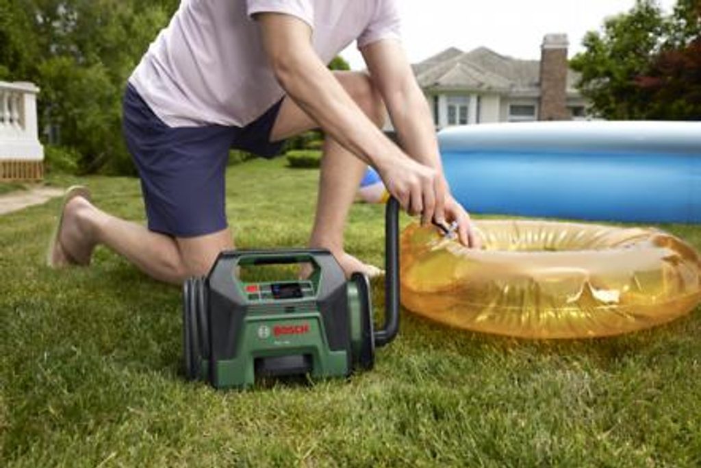 Aku kompresor Bosch je kompaktní a přenosný nástroj pro rychlé a efektivní nafukování pneumatik, velkých nafukovacích člunů a mnoha dalších předmětů, které vyžadují vysoký tlak. Díky své všestrannosti a praktickému designu se stane nepostradatelným pomocníkem v každé dílně i na cestách.