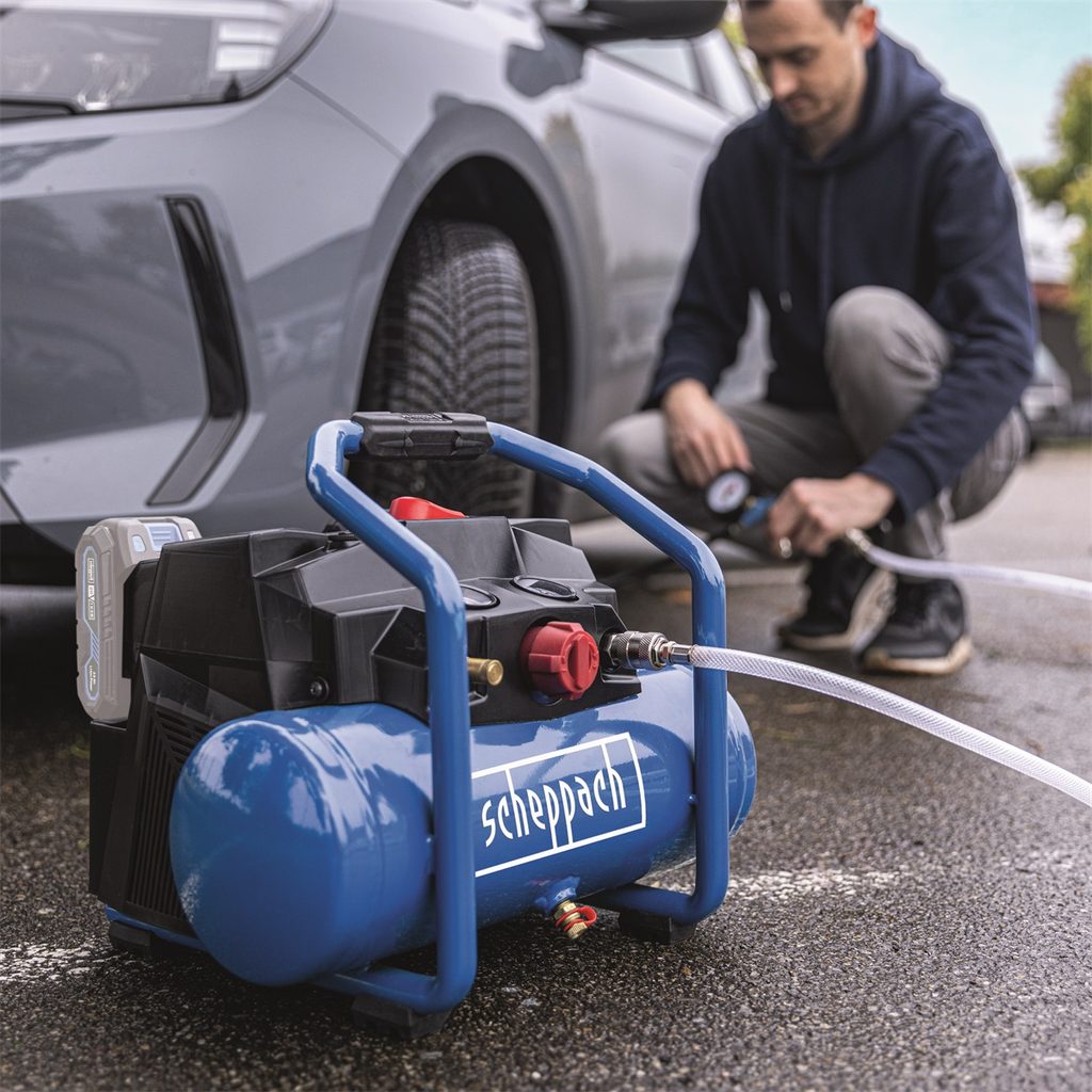 Tento kompresor je vybaven moderním uhlíkovým motorem, který zajišťuje plynulý chod. Je plně kompatibilní s akumulátory a nabíječkami z řady Scheppach IXES 20V, což uživatelům poskytuje maximální flexibilitu a pohodlí bez nutnosti použití kabelů. Pro provoz jsou však potřeba dvě baterie.