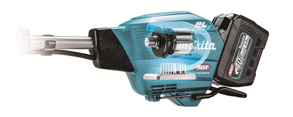 Spolehlivý bezuhlíkový motor tohoto křovinořezu umožňuje delší použití na jedno nabití akumulátoru a nabízí elektronický systém AFT, který automaticky vypne motor v případě náhlého poklesu otáček, což zvyšuje bezpečnost práce.