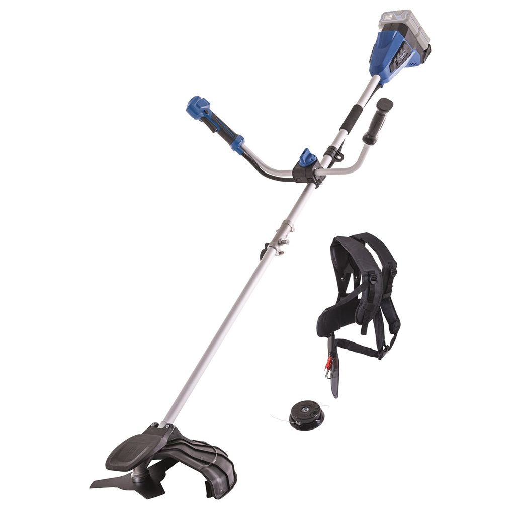 Pohon zajišťují dvě 20V baterie (celkem 40 V), které poskytují dostatek výkonu i pro práci v náročnějším terénu. Při použití strunové hlavy má křovinořez pracovní šířku 380 mm, zatímco při použití nože činí pracovní šířka 255 mm. Prémiový trojzubý nůž je navržen tak, aby zvládl i hustý podrost a drobné nálety. Strunová hlava je vybavena funkcí Tap’n’Go, která umožňuje snadné a rychlé prodloužení struny o průměru 1,6 mm.