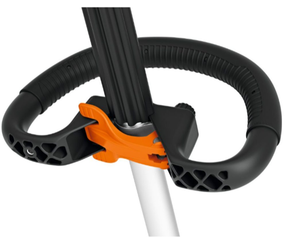 Kompaktní a vyvážená konstrukce tohoto vyžínače spolu s kruhovou rukojetí s měkkou částí zajišťuje flexibilní sečení a volnost pohybu, což oceníte při práci mezi stromy, keři nebo v jiných stísněných prostorech. Snadno nastavitelná rukojeť umožňuje přizpůsobení výšce uživatele, čímž zajišťuje ergonomickou pracovní polohu.