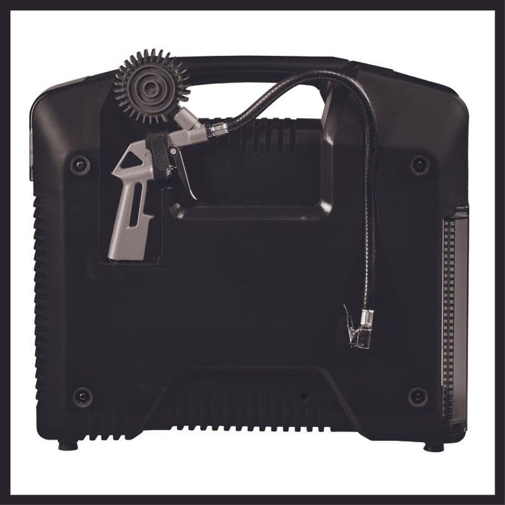 Integrovaný úložný prostor pro hadici a adaptéry zajišťují pořádek a snadný přístup ke všem komponentům. K provozu kompresoru jsou potřeba dvě 18V baterie z aku programu Einhell Power X-Change, což zaručuje dostatečný výkon pro jakýkoliv úkol.