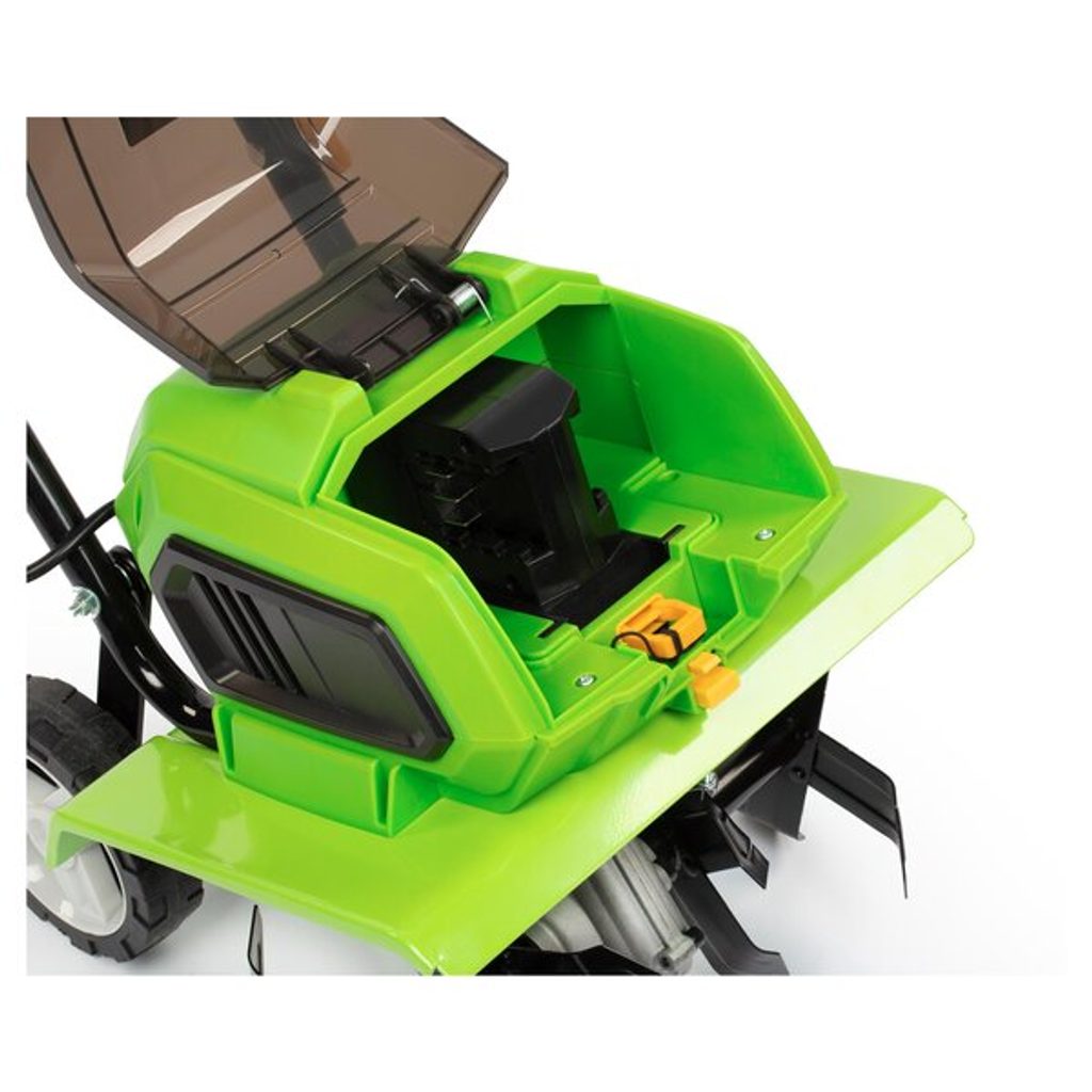 Výkonný Aku kultivátor Fieldmann FZK 70305-0 nabízí možnost nastavení pracovního záběru až na 36 cm. Čtveřice ocelových nožů s průměrem 22 cm pohání nejmodernější bezuhlíkový motor napájený dvojicí 2× 20V akumulátorů, stroj tak bez velké námahy připraví pro výsadbu nebo setí i větší plochy a tvrdší kdekoliv i tam kde není přístup k elektrické síti.