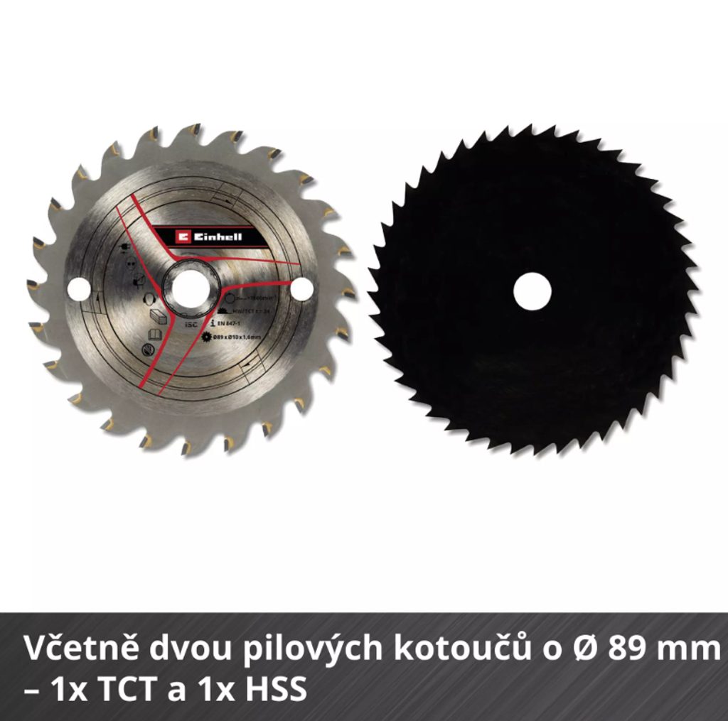 Pila ruční mini kotoučová Aku TE-CS 18/89 Li - Solo Einhell je ideální na provádění rovných řezů v kusech dřeva, panelech, parketách nebo deskách z různých materiálů. Aku varianta je extrémně flexibilní, zejména na pracovištích, kde není dostatečný přístup k elektrické zásuvce a dlouhý prodlužovací kabel by mohl představovat nebezpečí zakopnutí.