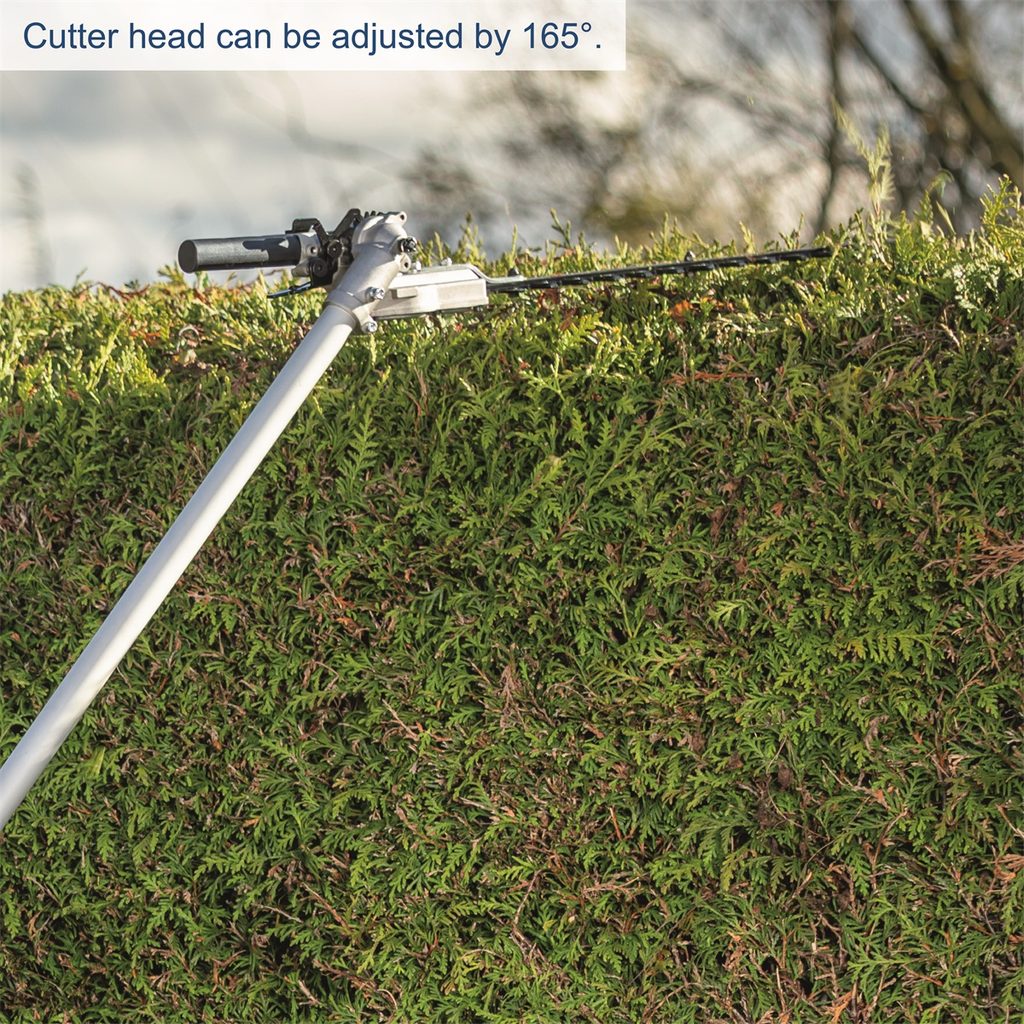 Nůžky na živý plot poskytují velký dosah, délku lišty 390 mm a nastavitelný úhel hlavy s 11 polohami. Vysoce kvalitní nože, vyřezávané laserem a broušené diamantem, zvládnou větve o průměru až 24 mm.