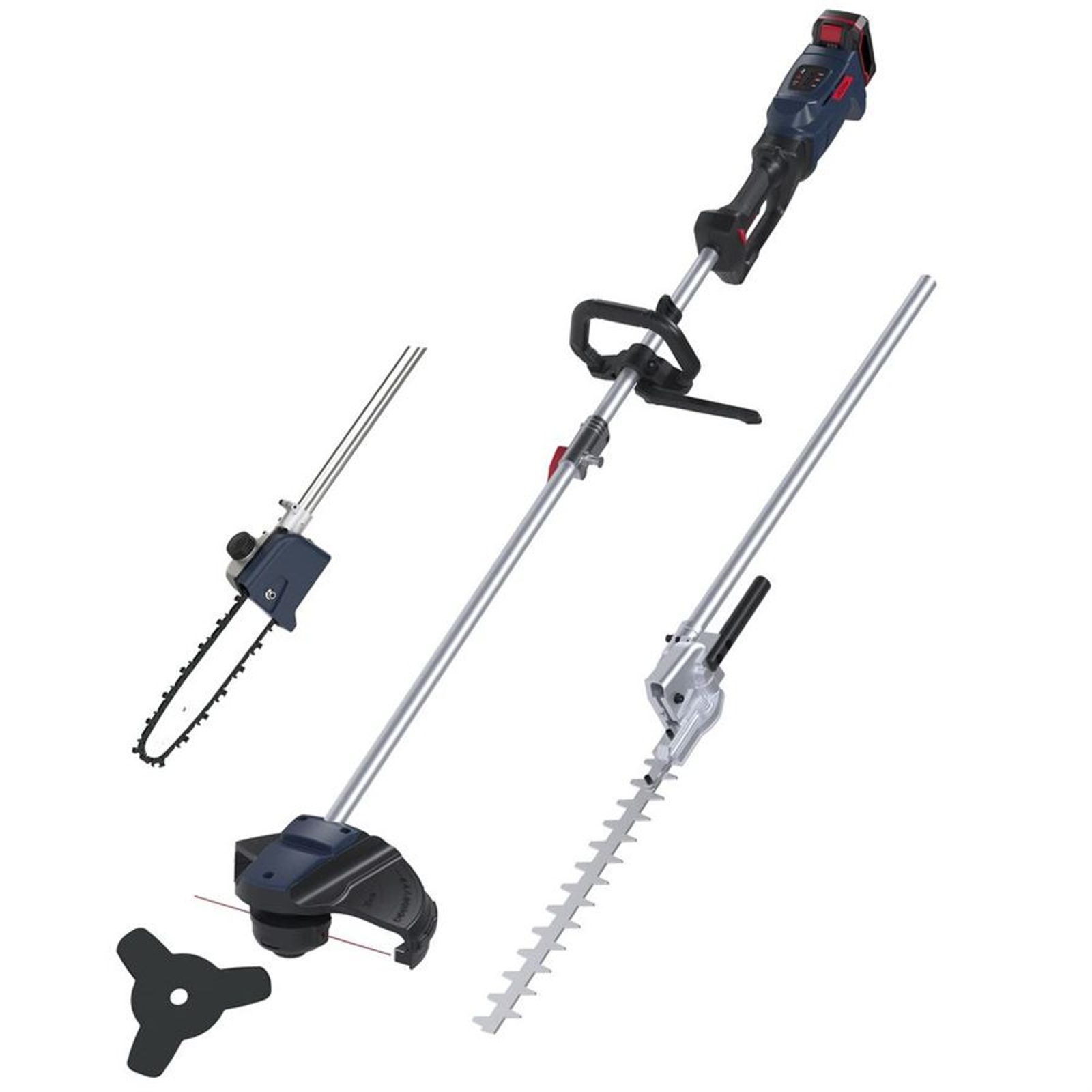 Akumulátorová teleskopická sada na údržbu zahrady Güde GPS 18-0 je skvělým univerzálním pomocníkem pro všechny práce spojené s údržbou zahrady, dvoru a zeleně. Tato všestranná sada obsahuje různé nástavce, díky kterým zvládnete širokou škálu úkolů. Naleznete zde nástavec na křovinořez, vyžínač, nůžky na živé ploty a řetězovou pilu na větve.