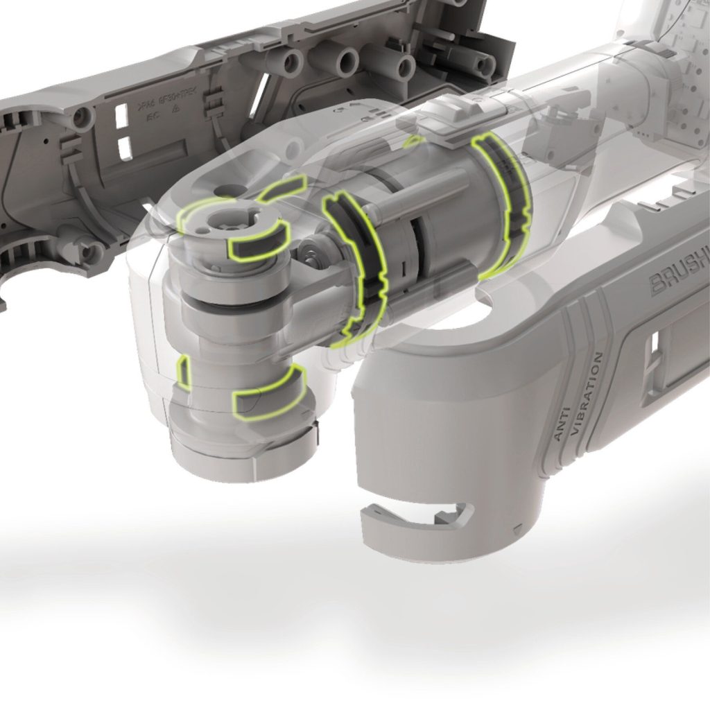 Rychloupínací zámek a magnetický adaptér umožňují výměnu příslušenství bez použití nářadí, 12kolíkový držák zajišťuje flexibilní umístění příslušenství. Inovativní hlava oddělená od vibrací a ergonomická rukojeť se Softgrip povrchem garantují pohodlnou a bezpečnou práci i při delším nasazení, LED osvětlení se postará o perfektní přehled nad pracovním místem.