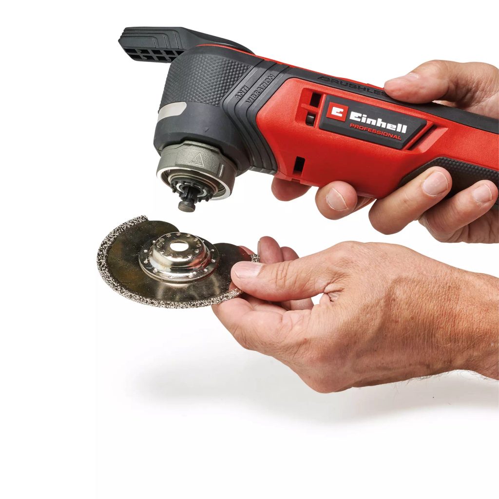 Bezuhlíkový motor Einhell PurePOWER nabízí vyšší výkon, delší dobu provozu a minimální nároky na údržbu. Díky oscilačnímu úhlu 3,2° a elektronické regulaci otáček zvládá přístroj precizní a materiálově šetrné řezání, broušení i škrábání, a to jak u dřeva, plastu, kovu, tak i při práci se spárami dlaždic.