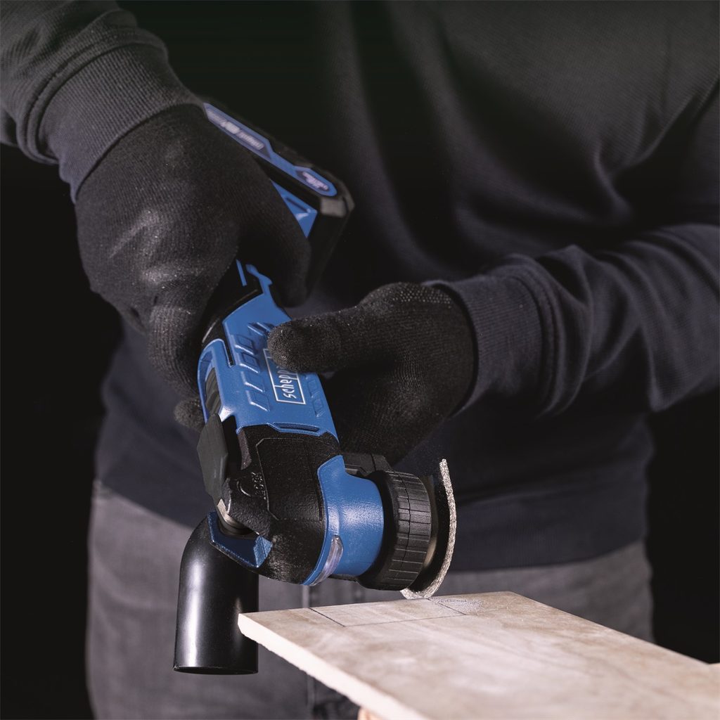 Aku multifunkční oscilační bruska Scheppach C-MT40-X pro různé úkoly, jako je odstraňování barev a lepidel, broušení a řezání v těsných rozích a úzkých prostorech, řezání trubek, odstranění silikonových tmelů, renovace okenních rámů, vyřezávání dlaždic nebo řezání keramických obkladů, sádrokartonů, plastů a měkkých kovů. Díky proměnlivé rychlosti oscilace, kterou lze nastavit v šesti krocích (10 000 až 40 000 otáček za minutu), se nástroj snadno přizpůsobí různým pracovním situacím.