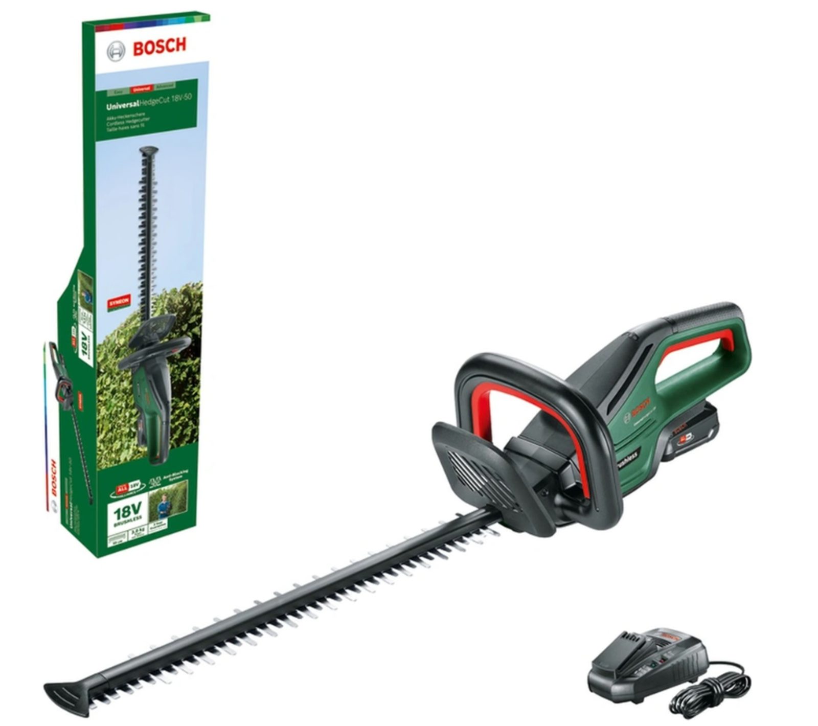 Aku nůžky na živé ploty Bosch Universal Hedge Cut 18-50 jsou navrženy pro perfektní výsledky při stříhání středně velkých živých plotů, a to s minimální námahou.