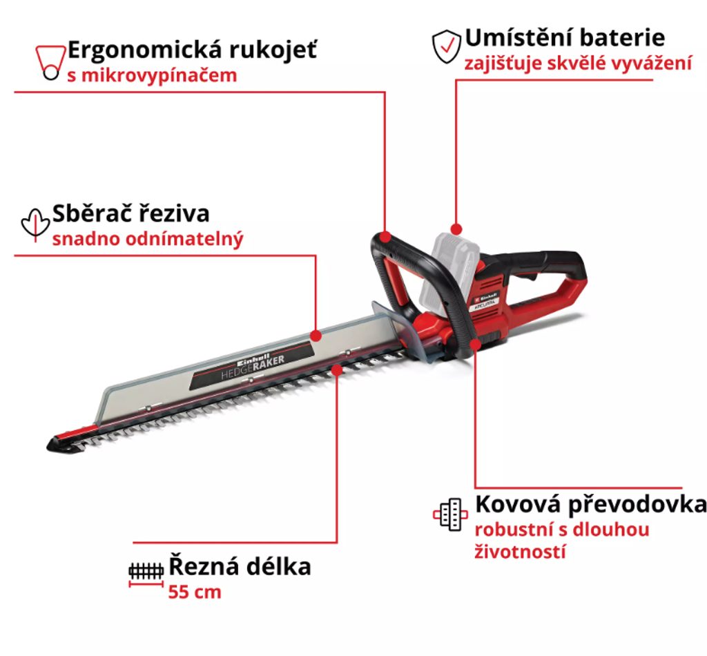 Aku nůžky na živý plot Einhell ARCURRA 18/55 jsou součástí Aku programu Einhell.