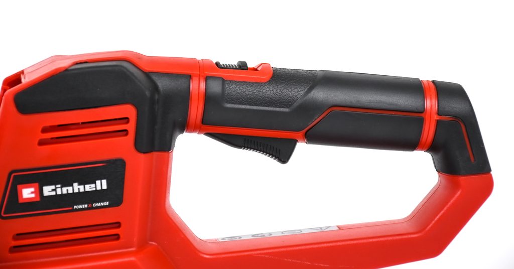 Rukojeť je z důvodu lepší a bezpečnější manipulace otočná, ergonomická úzká přední rukojeť je vybavena mikro-vypínačem.