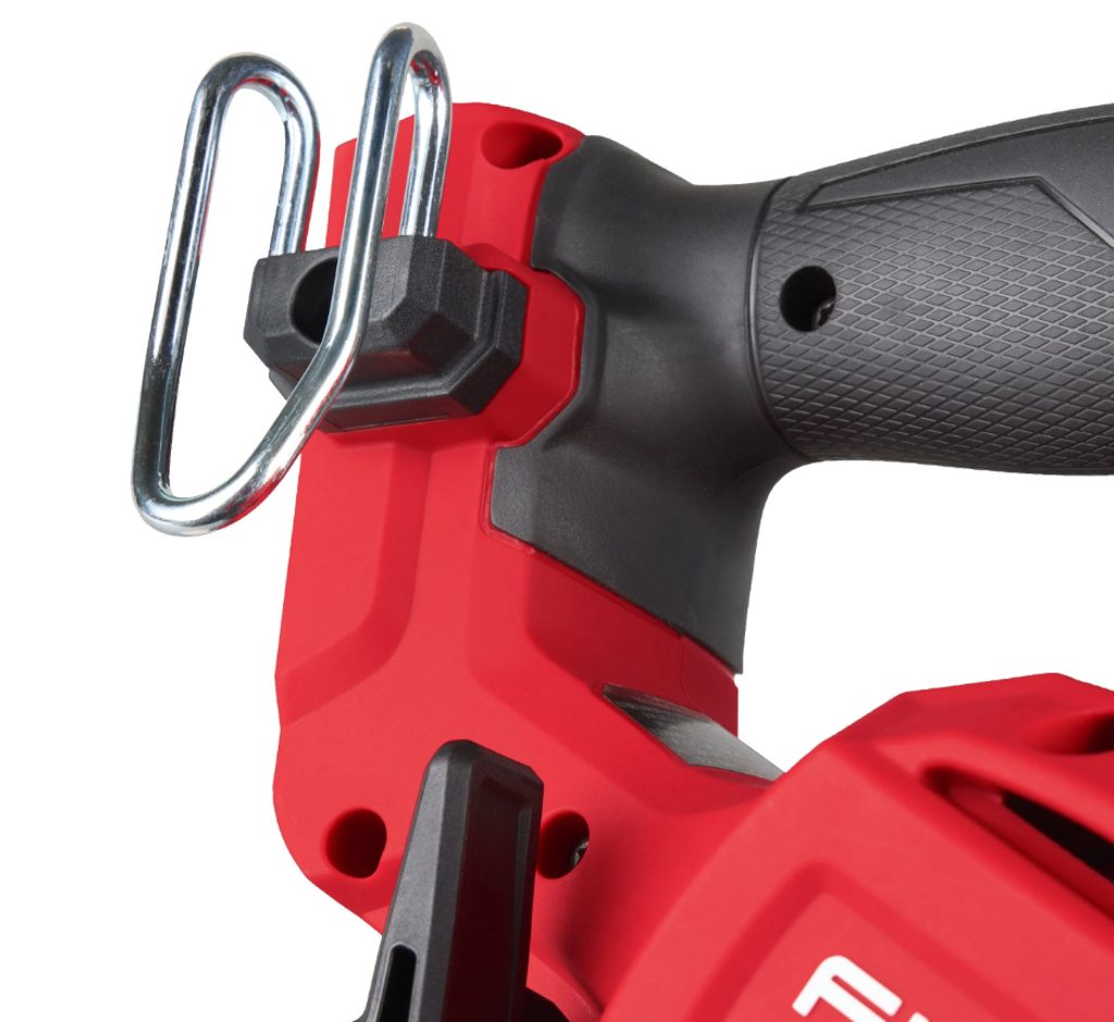 Konstrukce pily zahrnuje odlehčenou hořčíkovou patku pro maximální odolnost a kovový závěsný hák pro bezpečné uložení nářadí. Praktické LED osvětlení spolu s integrovaným prachovým fukarem zajišťují dobrou viditelnost řezné linie.
