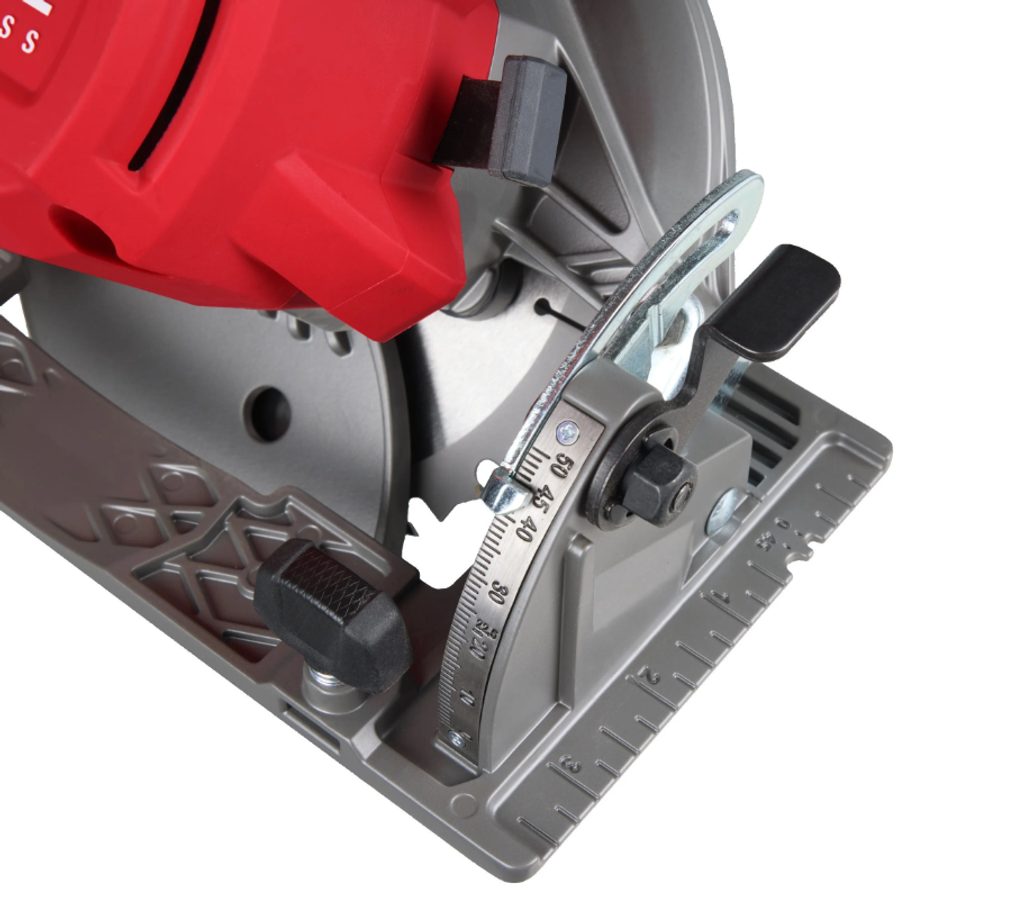 Pila je vybavena 165 mm pilovým kotoučem, který umožňuje hloubku řezu až 57 mm a dokáže najednou proříznout tři 18mm desky OSB. Pro větší komfort při práci nabízí možnost úhlového řezu až do 50°.