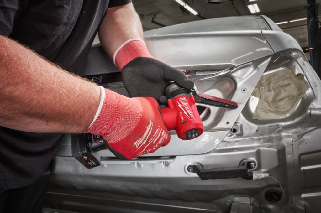 Aku pásový pilník Milwaukee je akumulátorový pásový pilník s napětím 12 V a šířkou pásu 13 mm, který stanovuje nové standardy v této kategorii nářadí. S hmotností pouhých 1,1 kg včetně 2,0Ah akumulátoru se jedná o nejlehčí akumulátorový pásový pilník na trhu, který svými parametry předčí i pneumatické konkurenty.