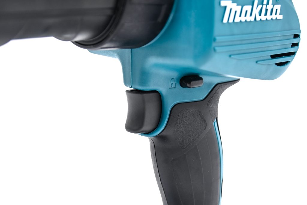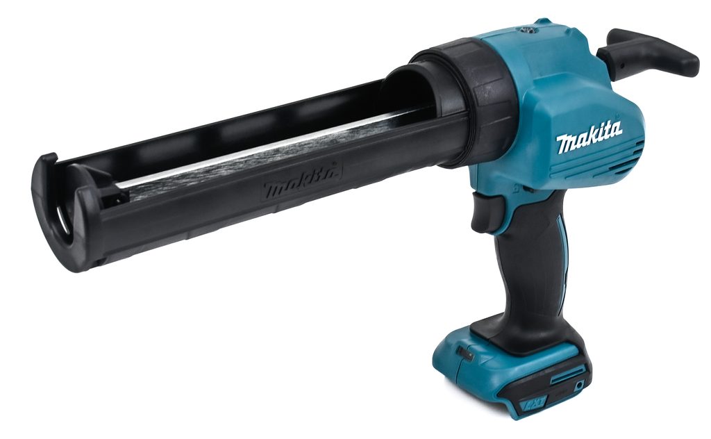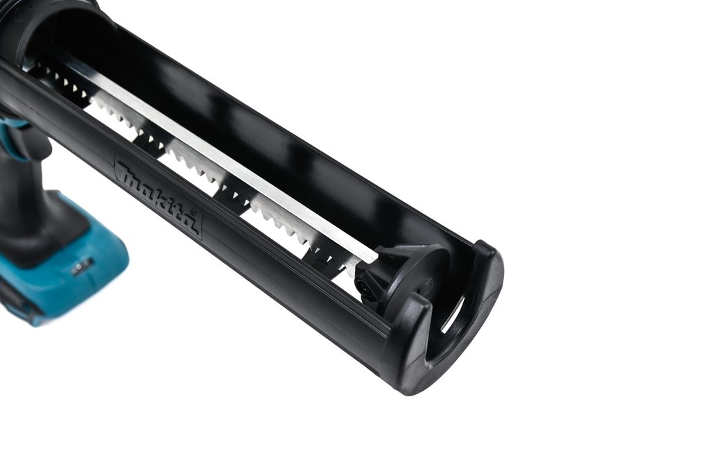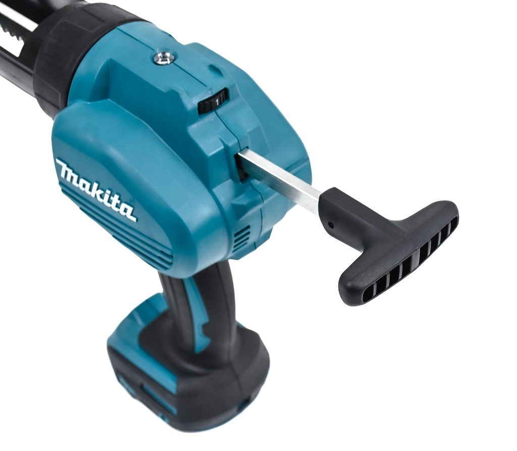 Aku vytlačovací pistole DCG180Z od značky Makita. Píst umožňuje nasávání silikonu do tuby. Možnost uchycení tuby 300 ml, nástavec je otočitelný o 360°. Nástavec na tuby 600 ml 196352-6 je dostupný jako volitelné příslušenství.