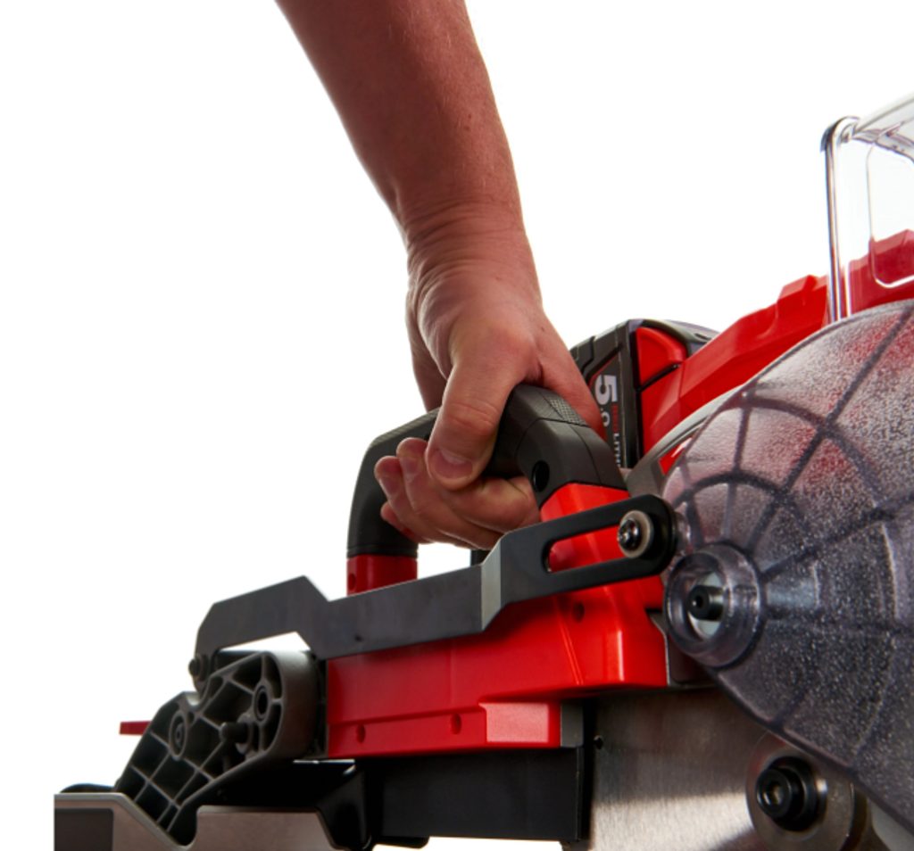 Aku pila nabízí rychlé nastavení pokosu pomocí praktických zarážek pro jednoduché nastavení úhlů doleva i doprava. Velké posuvné dorazy poskytují maximální oporu řezaného materiálu a garantují stabilitu i přesnost při práci.