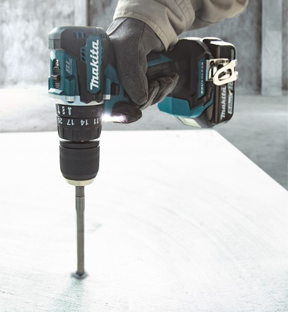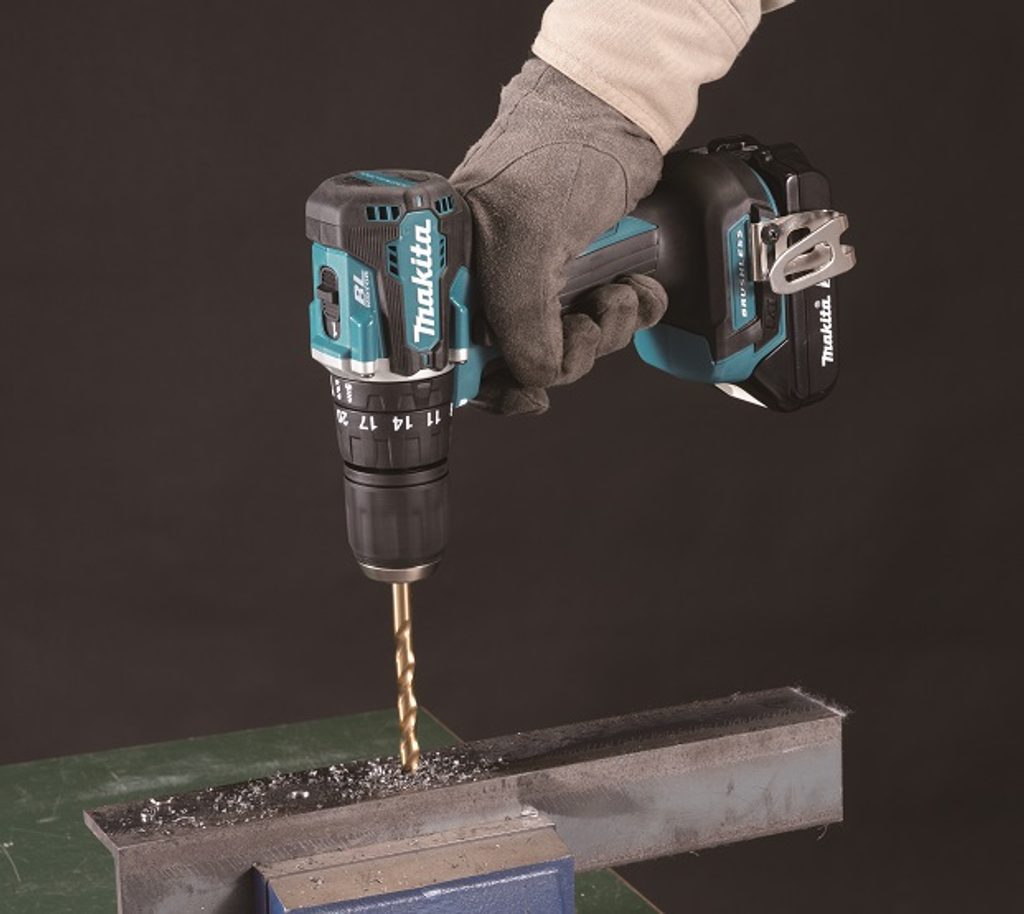 Ergonomicky tvarovaná pogumovaná rukojeť zaručuje pohodlné a bezpečné držení během práce. Aku příklepová vrtačka je součástí aku programu Makita LXT 18V a je tak kompatibilní s akumulátory této řady.