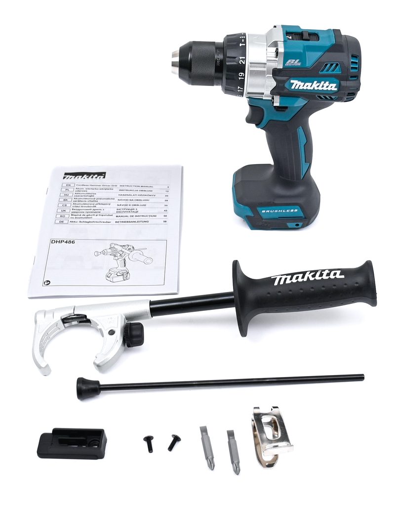 S odolností proti přetížení a menšími rozměry než jeho předchůdce DHP481 nabízí optimální výkon a kompaktnost. Dvourychlostní převodovka a jednodílné kovové rychlosklíčidlo zajišťují snadnou manipulaci a rychlé výsledky.