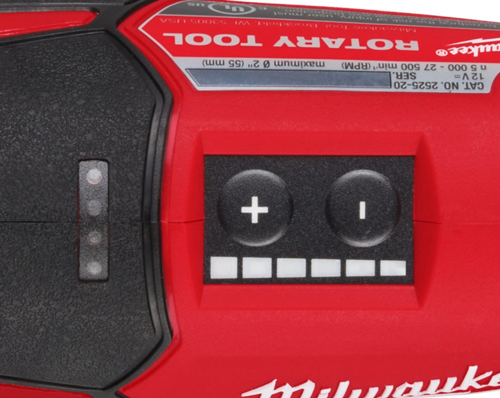 Aku přímá bruska Milwaukee se vyznačuje dokonale vyváženou konstrukcí, která umožňuje uživateli držet nářadí v těsné blízkosti obrobku pro maximální kontrolu při práci. Bruska nabízí široký rozsah otáček od 5 000 do 27 500 za minutu s možností nastavení 12 různých rychlostních stupňů. Díky tomu si můžete vždy zvolit ideální rychlost pro konkrétní pracovní úkon.