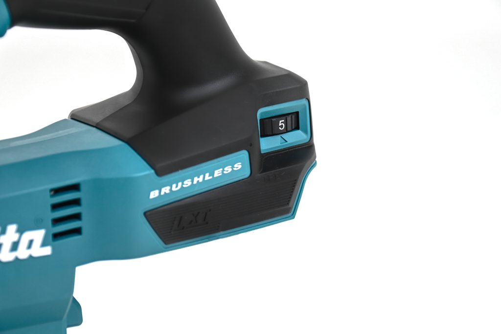 Pila je navržena s ohledem na pohodlí a bezpečnost uživatele. Vypínač lze ovládat z obou stran stroje, což zvyšuje flexibilitu při práci, a také je možné aretovat vypínač pro stálý chod, což je ideální pro delší řezání. Regulace rychlosti umožňuje uživateli přizpůsobit rychlost řezání typu materiálu a požadovanému výsledku.