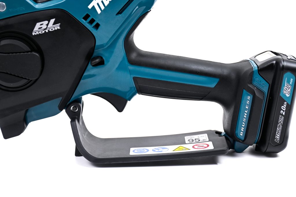 Pro větší bezpečnost a ochranu jak uživatele, tak samotného stroje, je vybavena posuvným krytem lišty. Aretace vypínače, která je dostupná z obou stran stroje, činí z této pily ideální volbu pro jak leváky, tak praváky, což podtrhuje její univerzálnost a přístupnost. Aku prořezávací pila Makita je součástí aku programu Makita CXT 12V a je tak kompatibilní s akumulátory této řady.