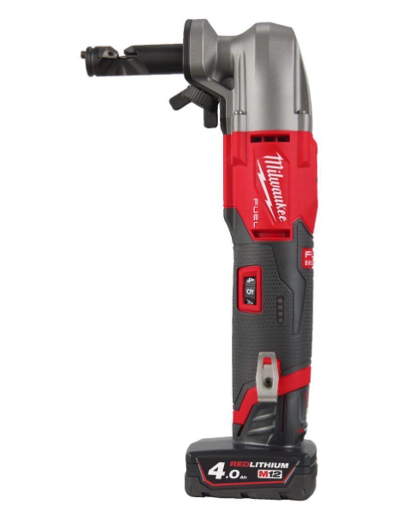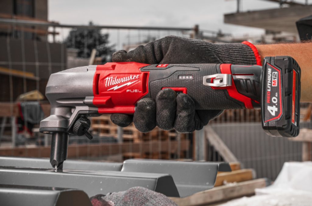 Aku prostřihovač na plech Milwaukee představuje první 12 V prostřihovač plechu na trhu, který zvládne řezat měkkou ocel do tloušťky 1,6 mm, nerezovou ocel do 1,2 mm a hliník až do 2,1 mm.