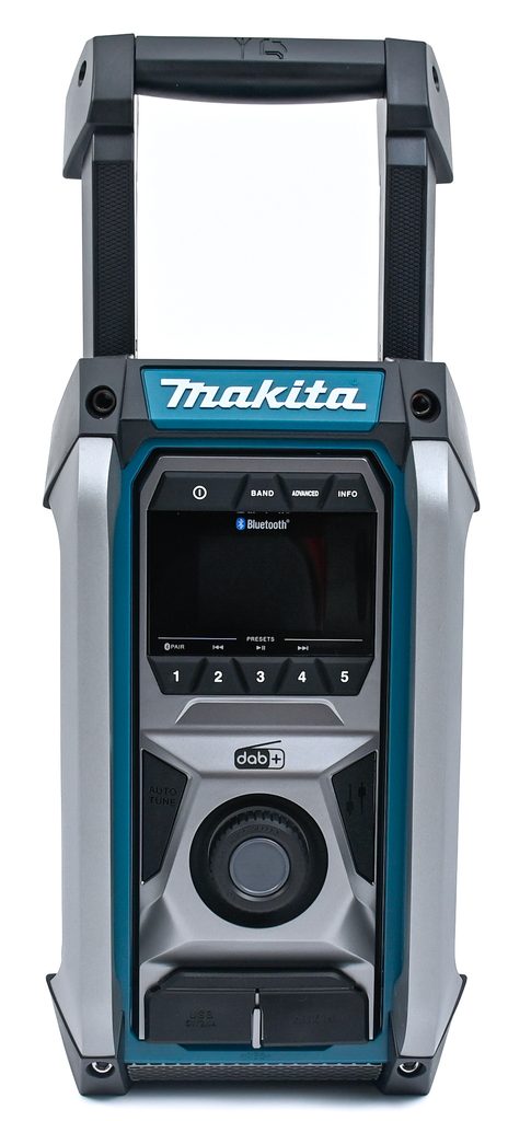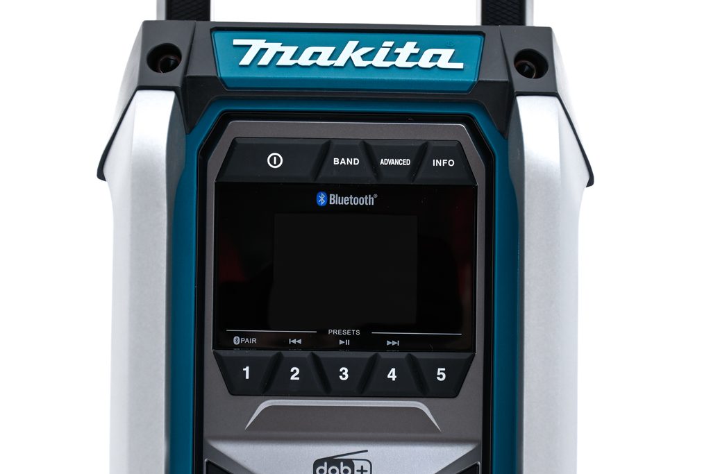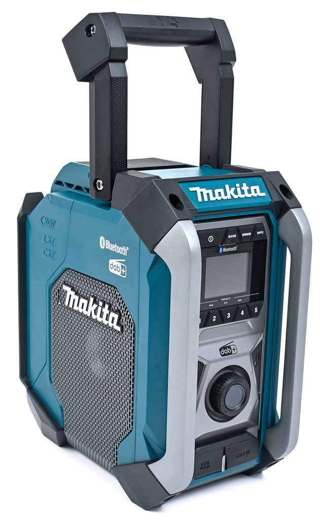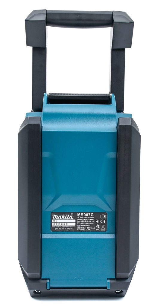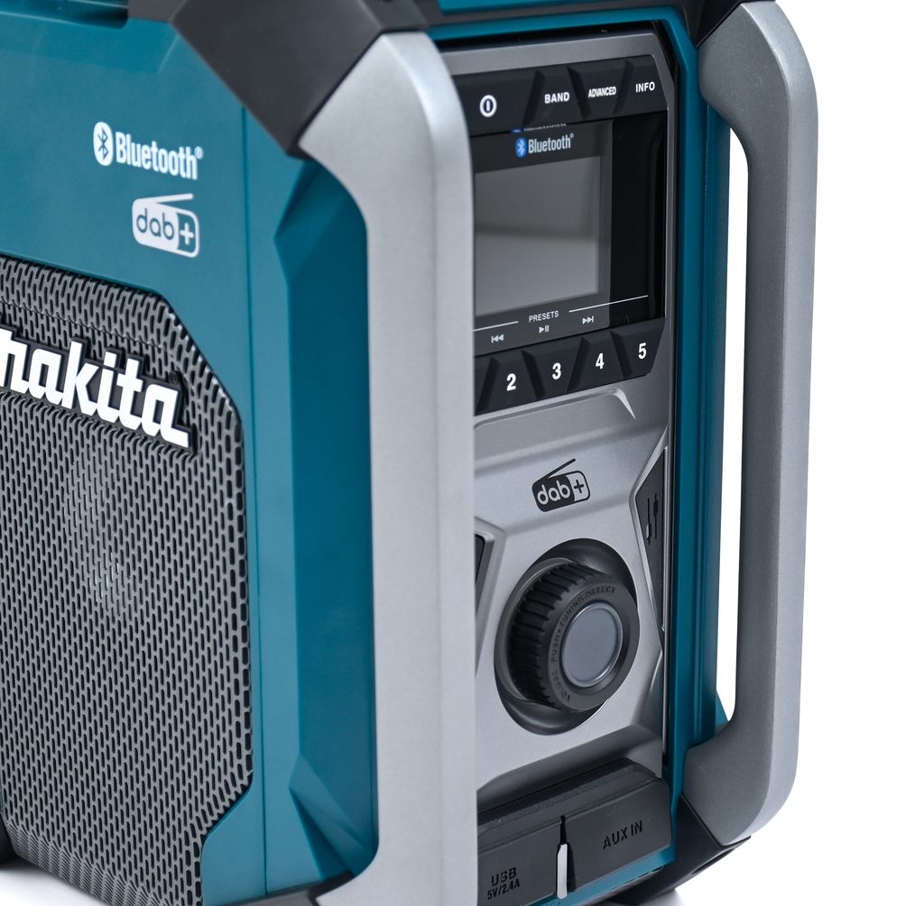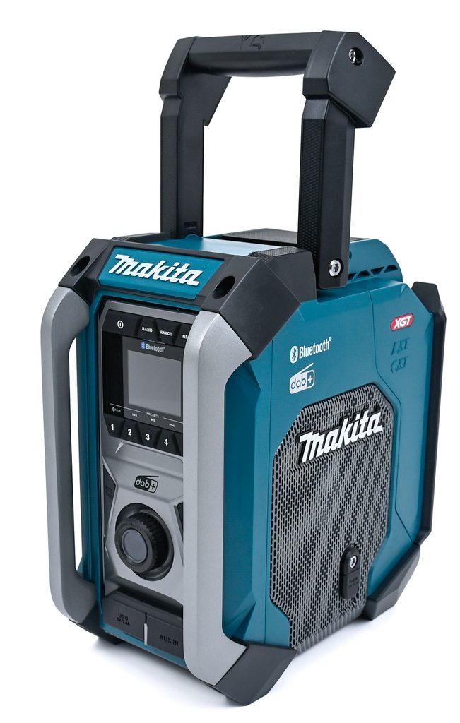 Makita MR007GZ pracuje na Li-ion akumulátory CXT, LXT i XGT (včetně XGT 2, 2,5 a 4 Ah) z aku programu Makita CXT/LXT a XGT nebo na síťový adaptér. Nabízí příjem digitálního signálu DAB/DAB+ i klasického FM, robustní tělo s pogumovanými hranami odolá prachu i stříkající vodě – certifikace IP65. Díky Bluetooth 5.0 bezdrátově připojíte telefon až na 30 metrů, nechybí ani USB výstup pro nabíjení externích zařízení (DC5V/2,4 A). Automatické ladění, paměť na 5 stanic a integrovaná anténa v rukojeti jsou samozřejmostí.