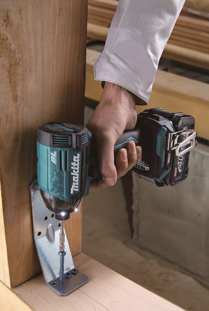 Čtyři LED osvětlují pracovní plochu a funkce dosvitu zajišťuje perfektní osvětlení i při krátkých přestávkách v práci, s možností přepnutí na stálé svícení. Aku rázový šroubová Makita je součástí aku programu Makita XGT 40V a je tak kompatibilní s akumulátory této řady.