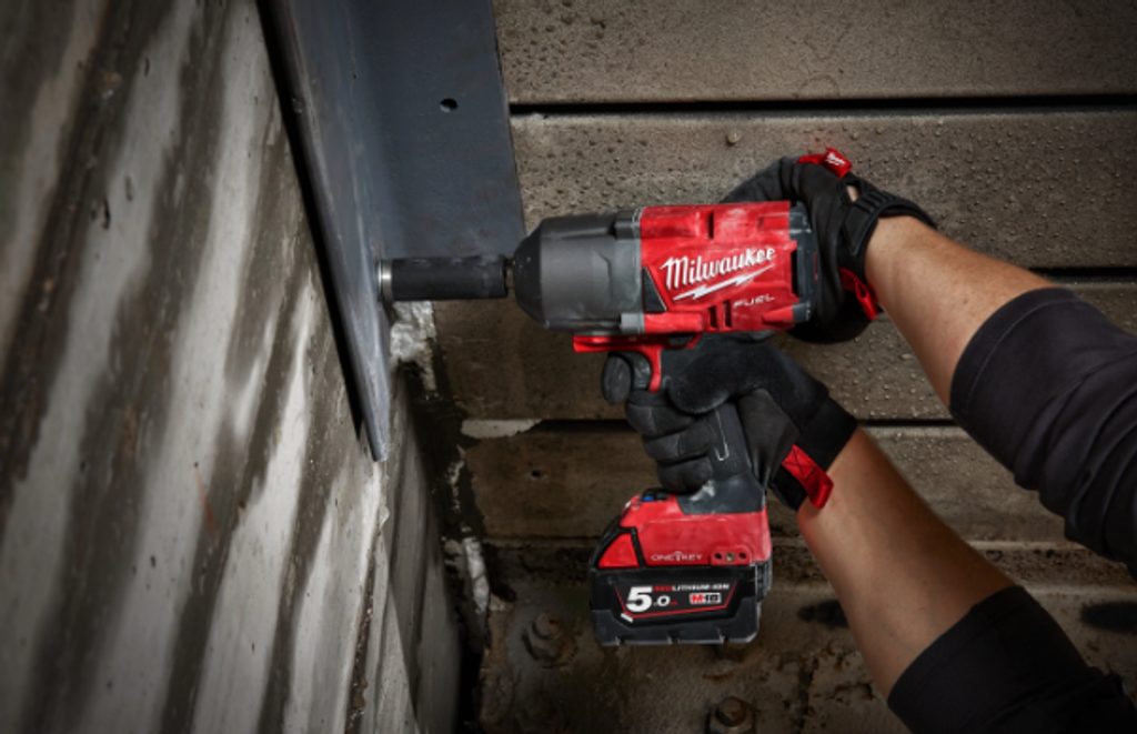 Aku rázový utahovák Milwaukee M18 ONEFHIWF34-502X 3/4" nabízí působivý výkon s maximálním utahovacím momentem 1627 Nm.