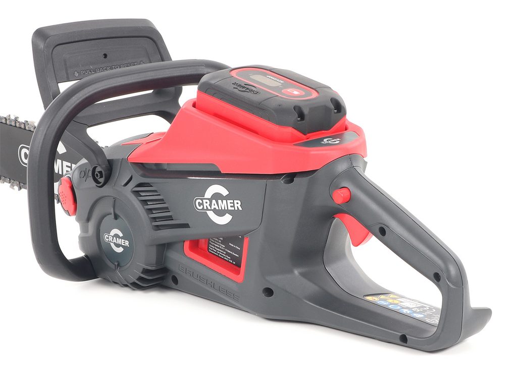 Naše 82V technologie soupeří s ekvivalentní benzínovou řetězovou pilou o objemu 55 ccm, přesto má výrazně nižší provozní a vlastnické náklady, což z ní činí životaschopnou volbu pro každého profesionálního uživatele nebo firmu. Kromě výhod z hlediska nákladů a výkonu nabízí řada Cramer 82V dodatečnou bezpečnost na pracovišti s nízkými vibracemi, nízkou hlučností a nulovými emisemi nebo škodlivými výpary pro obsluhu při řezání. Model 82CS27 je navíc vybaven integrovanou brzdou řetězu a spouštěním pomocí dvou tlačítek.