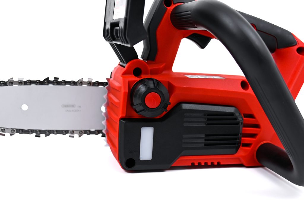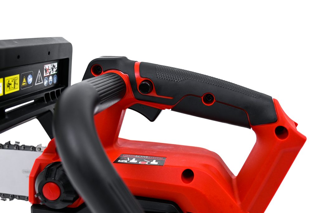Výměna a napínání řetězu probíhá bez použití jakýchkoli nástrojů, což usnadňuje manipulaci. Díky automatickému mazání řetězu a velkému plnicímu otvoru pro olej je údržba jednoduchá. Pevný ozubený doraz je vyroben z kovu a ergonomická rukojeť je opatřena měkkým úchytem pro jisté a bezpečné držení.