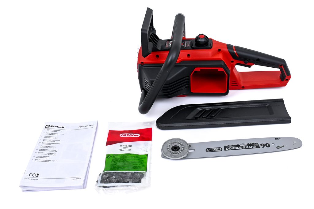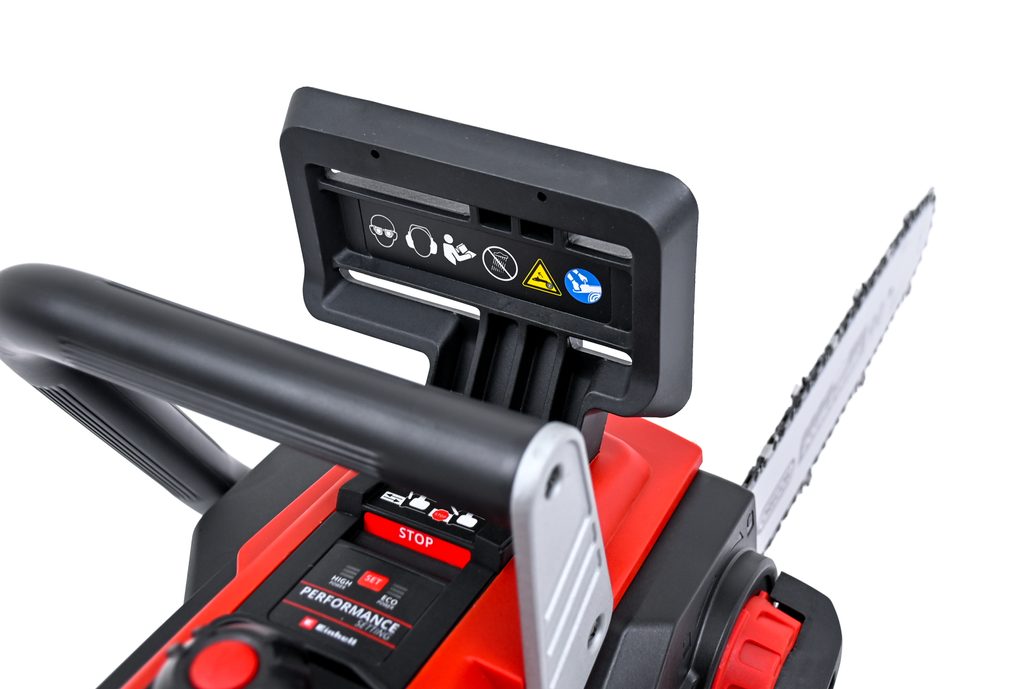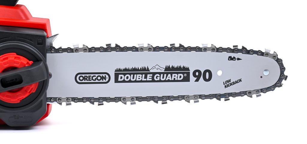 Pila je vybavena kvalitní lištou a řetězem OREGON, které si poradí nejen s větvemi, ale i s většími kmeny či palivovým dřevem. Automatické mazání řetězu, snadná výměna a nastavení napnutí řetězu bez použití nářadí zajišťují maximální komfort při práci. Díky ochraně proti zpětnému rázu, okamžité brzdě řetězu a záchytnému čepu je práce s pilou bezpečná a spolehlivá. Ergonomická rukojeť s měkkým úchopem a robustní kovový doraz zajišťují pevné a pohodlné ovládání.