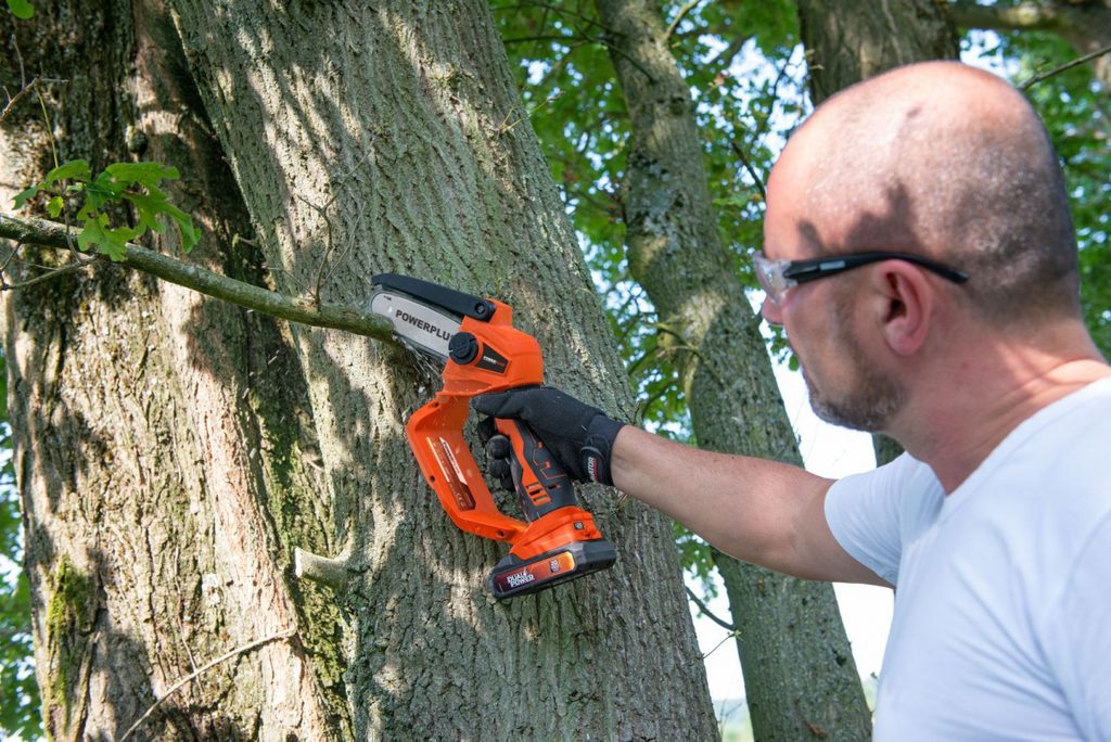 Díky svému kompaktnímu provedení lze aku prořezávací pilu 20V POWDPG7572 od značky PowerPlus ovládat pohodlně jednou rukou. Tento stroj nejenže zefektivňuje práci, ale zároveň zajišťuje požadovaný komfort při práci a svobodu pohybu. Stroj lze snadno ovládat v stísněných a špatně dostupných prostorách, jako jsou například mezery mezi větvemi nebo v keřích.
