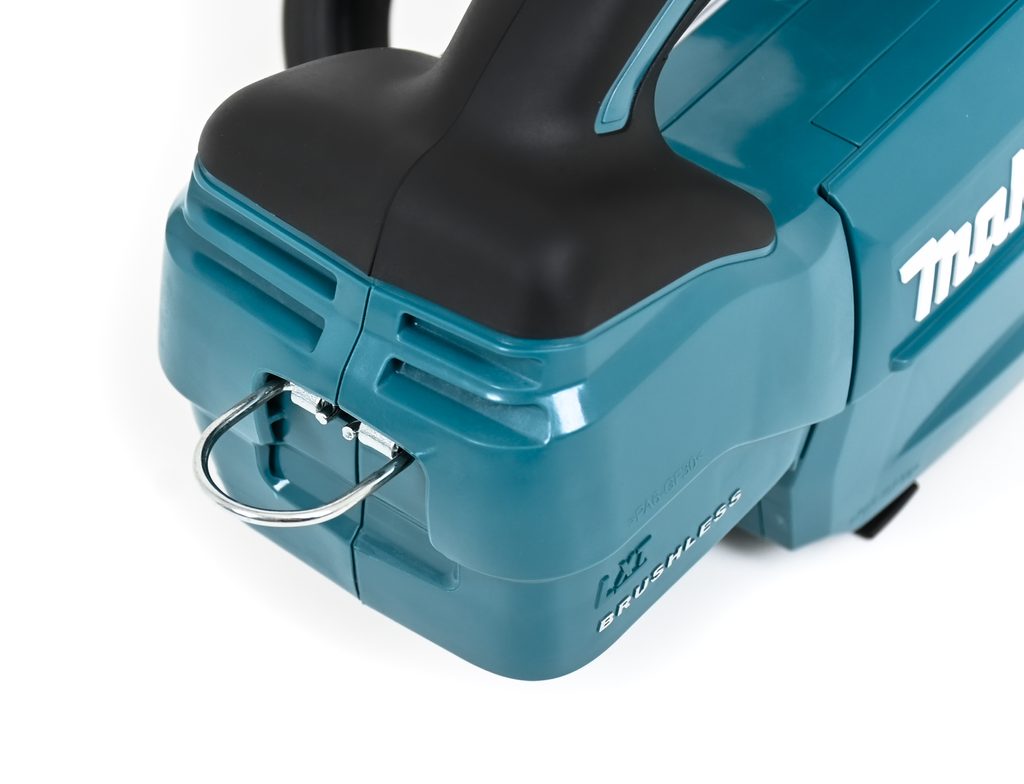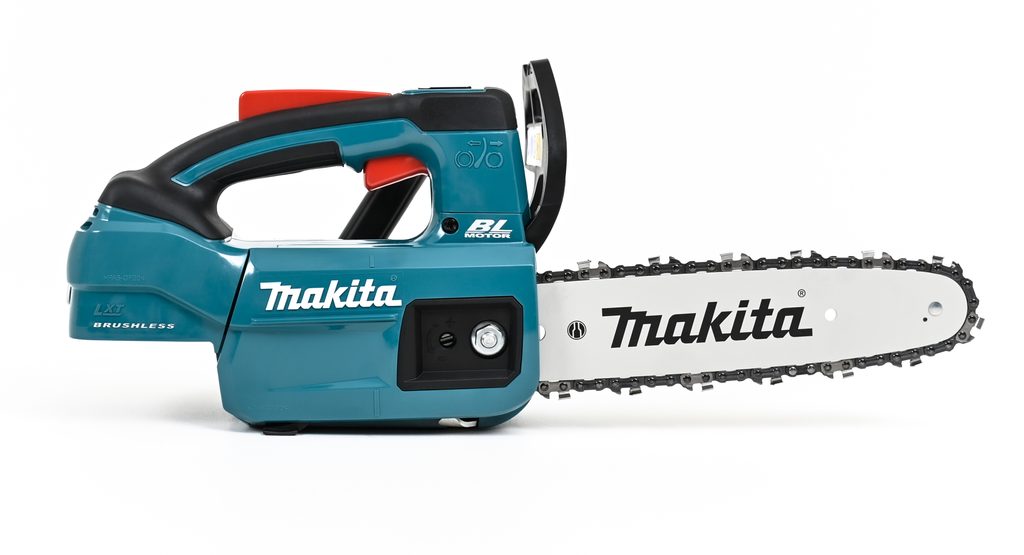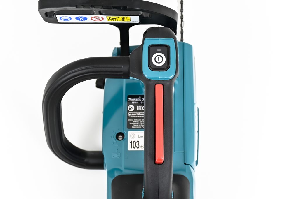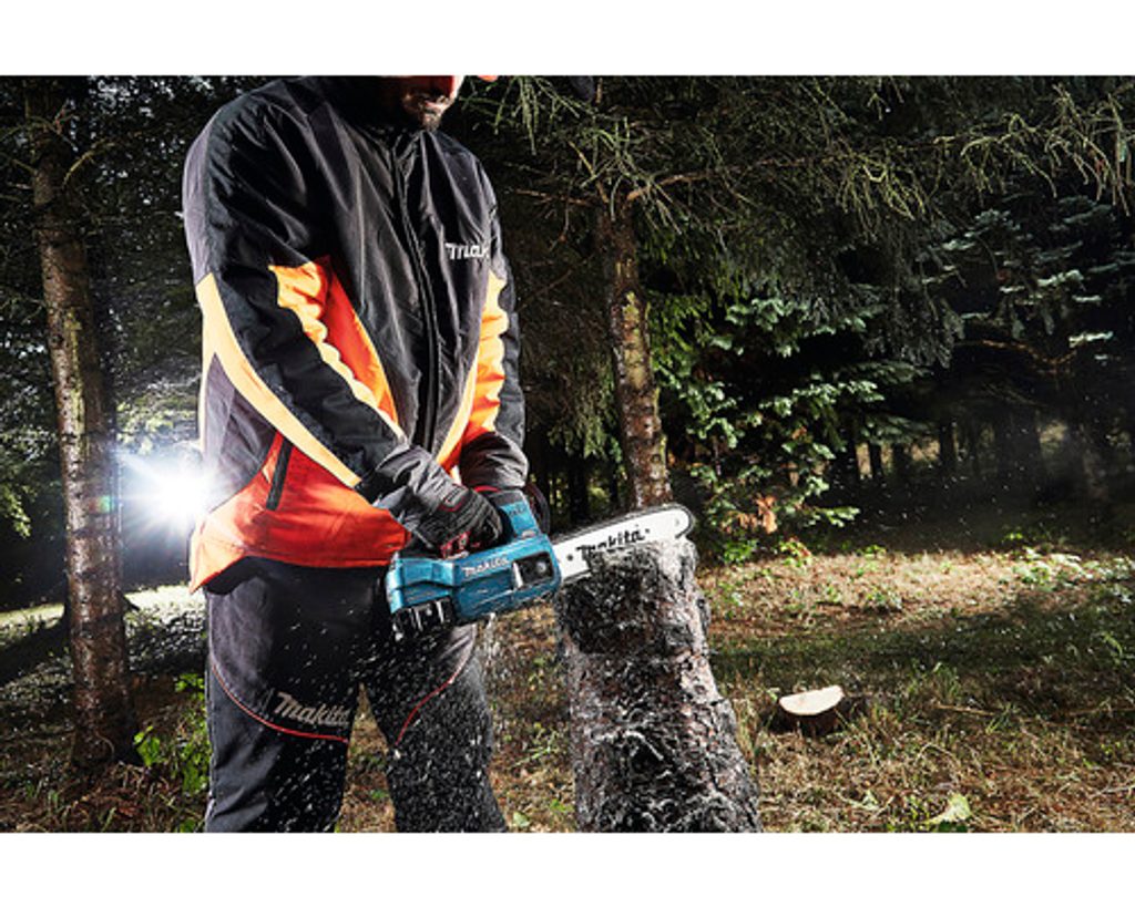 Automatické mazání řetězu s možností regulace množství oleje, řetězová a motorová brzda zajišťují bezpečnou a hladkou práci. Lišta se snadno uchycuje pomocí šroubu, což zjednodušuje údržbu a výměnu. Ergonomicky tvarovaná pogumovaná rukojeť zaručuje pohodlný úchop a bezpečnost při práci, zatímco integrovaný háček poskytuje pohodlné uchycení nástroje, když není používán. Aku řetězová pila je součástí aku programu Makita LXT.