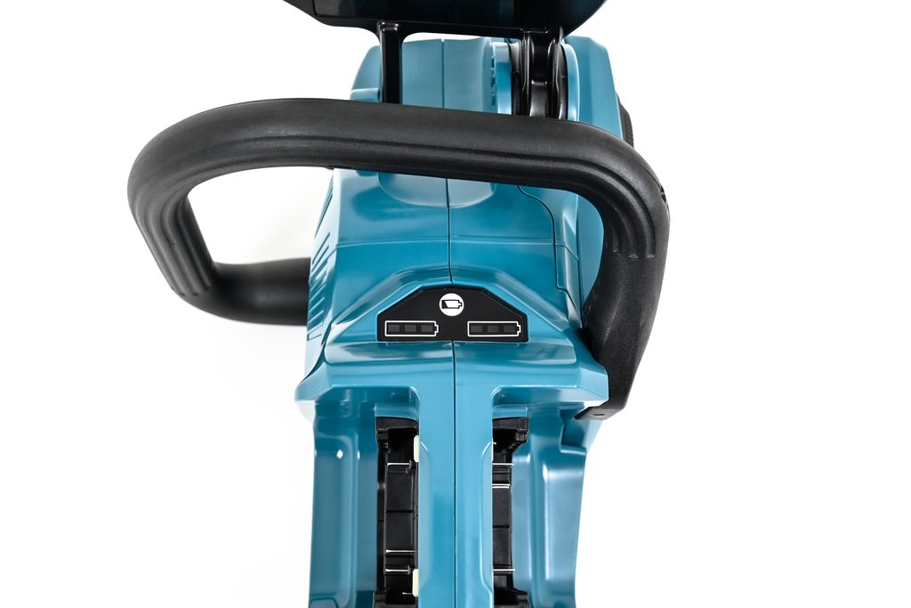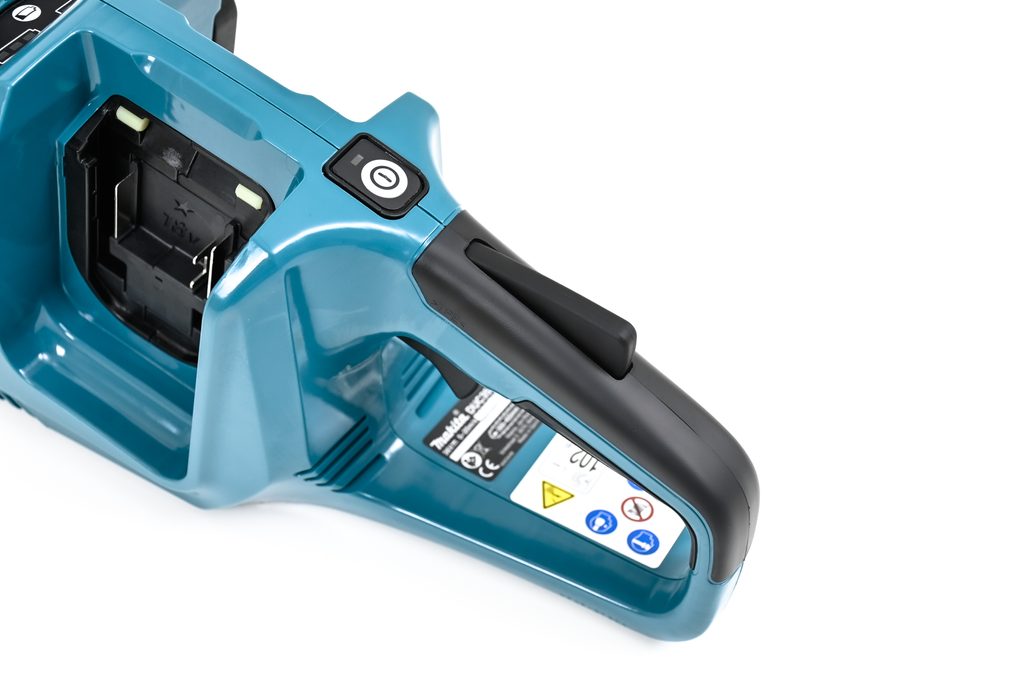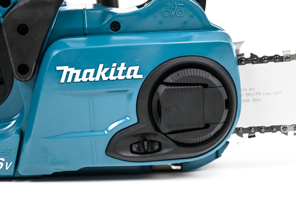 Pro vyšší bezpečnost byla tato pila vybavena vypínačem s automatickým vypnutím při nečinnosti. Řetěz pily využívá automatické mazání a beznástrojové napínání. Aku řetězová pila je součástí aku programu Makita LXT.