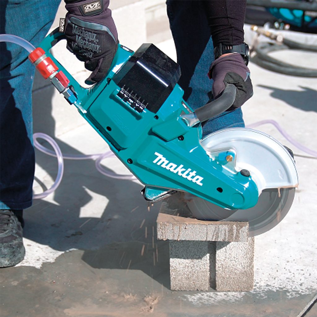 Velkou výhodou je speciální kryt akumulátorů, který je navržen tak, aby chránil baterie před prachem a vodou. Pila navíc umožňuje připojení vodního chlazení, což snižuje přehřívání při práci a zvyšuje efektivitu řezání. Aku rozbrušovací pila Makita součástí aku programu Makita LXT 18V a je tak kompatibilní s akumulátory této řady.