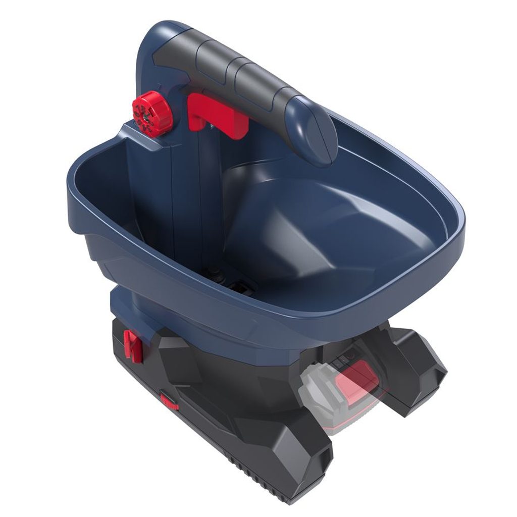 Aku rozmetadlo má objem zásobníku 3,3 litru, což umožňuje delší práci bez nutnosti častého doplňování. Ergonomická měkká rukojeť zajišťuje pohodlné držení a snadnou manipulaci i při delším používání.
