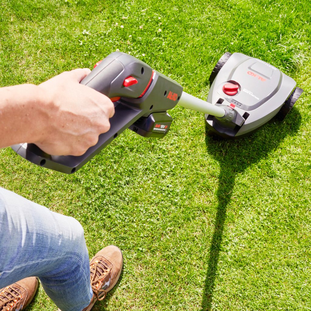 Ruční aku sekačka AL-KO 22.4 v setu s akumulátorem 2,5 Ah a nabíječkou vyniká svou mimořádnou obratností díky otočné rukojeti. Díky tomu je skvělým pomocníkem i na hůře přístupných místech, jako jsou prostory pod živými ploty, keři nebo třeba pod trampolínou.