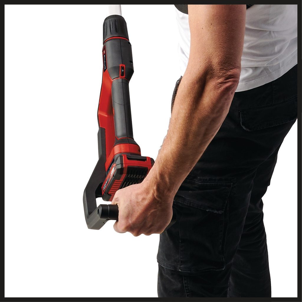Komfort při delším používání podporuje funkce nepřetržitého chodu, měkké úchopové plochy a nastavitelný popruh, který pomáhá s optimálním rozložením hmotnosti. Součástí balení je také praktický držák na zeď, který umožňuje úsporné skladování zařízení po skončení práce.